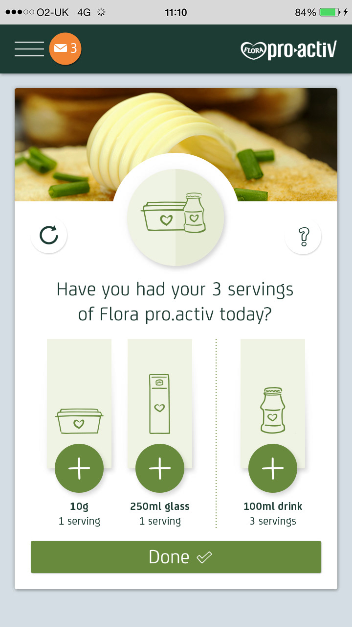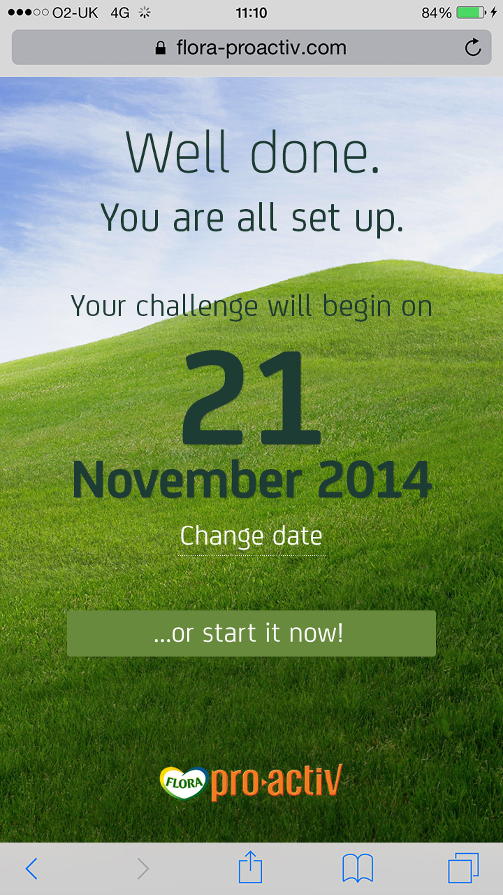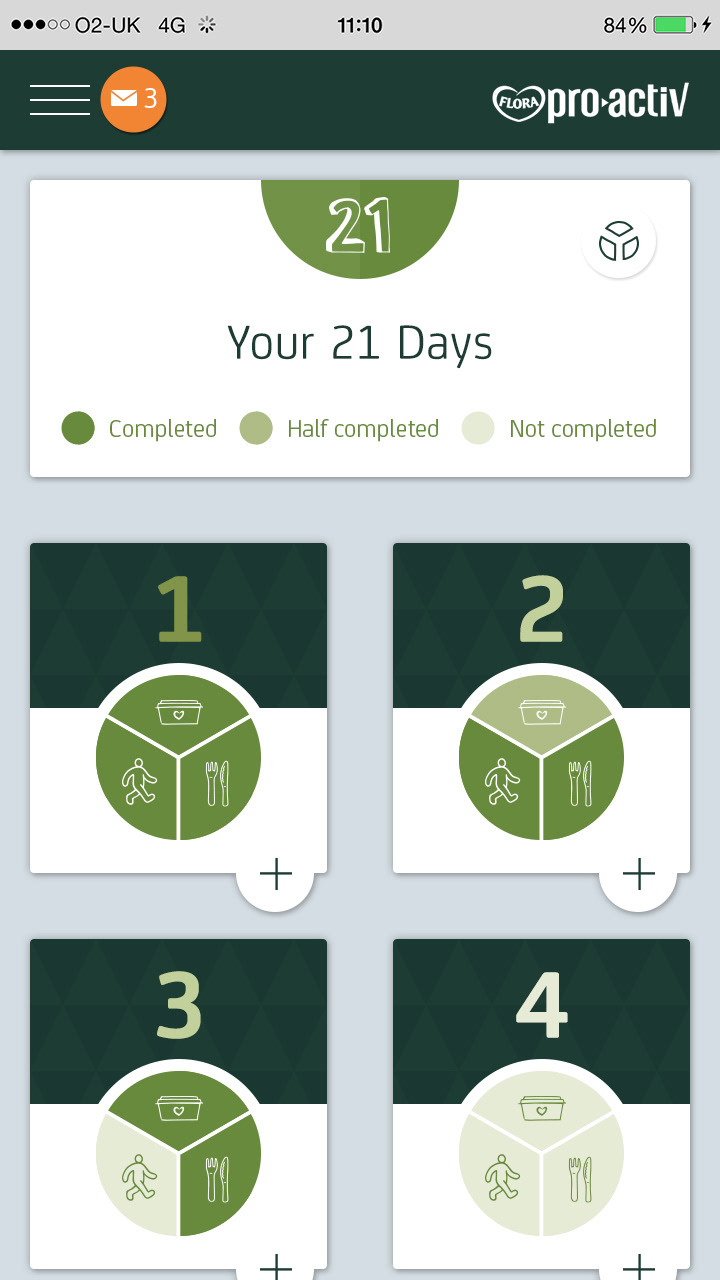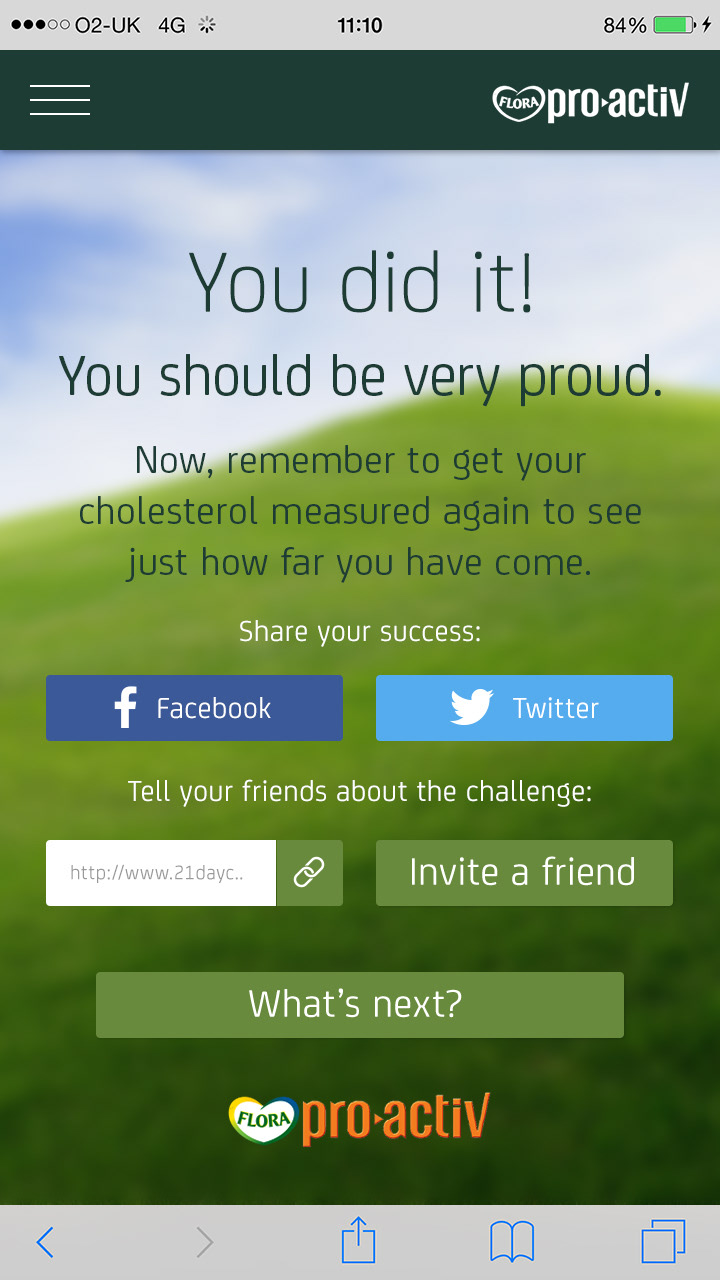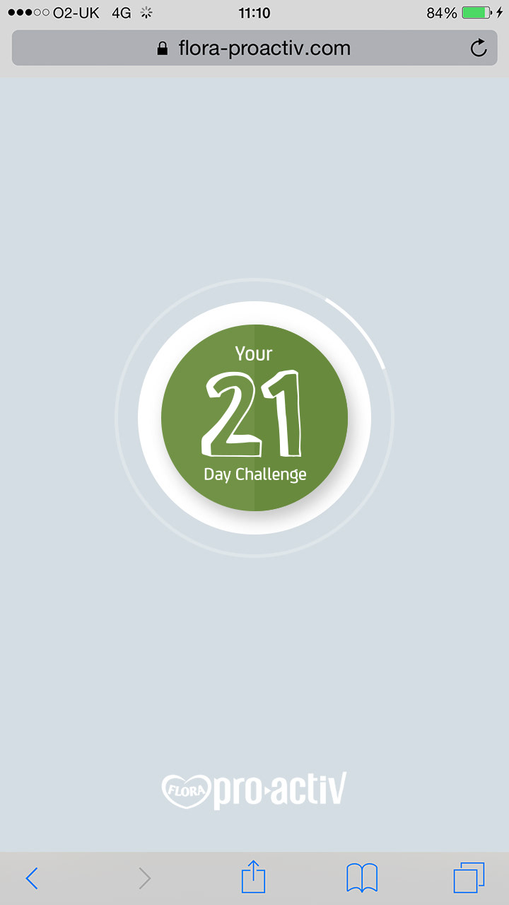 Flora Pro-Activ asked adam&eveDDB to design a 21 Day Challenge to encourage people to make small changes to their daily routine that can make a big difference to their health by lowering their cholesterol. The hope was that people would feel good about the changes and perhaps have some fun along the way.