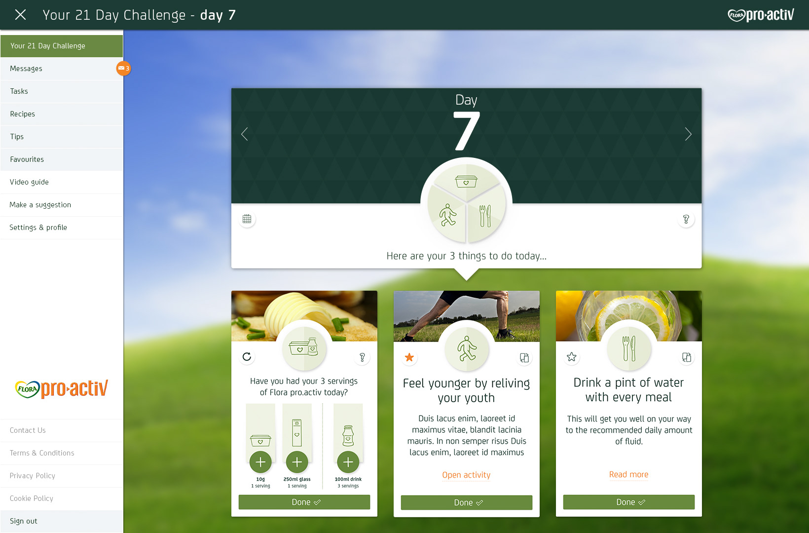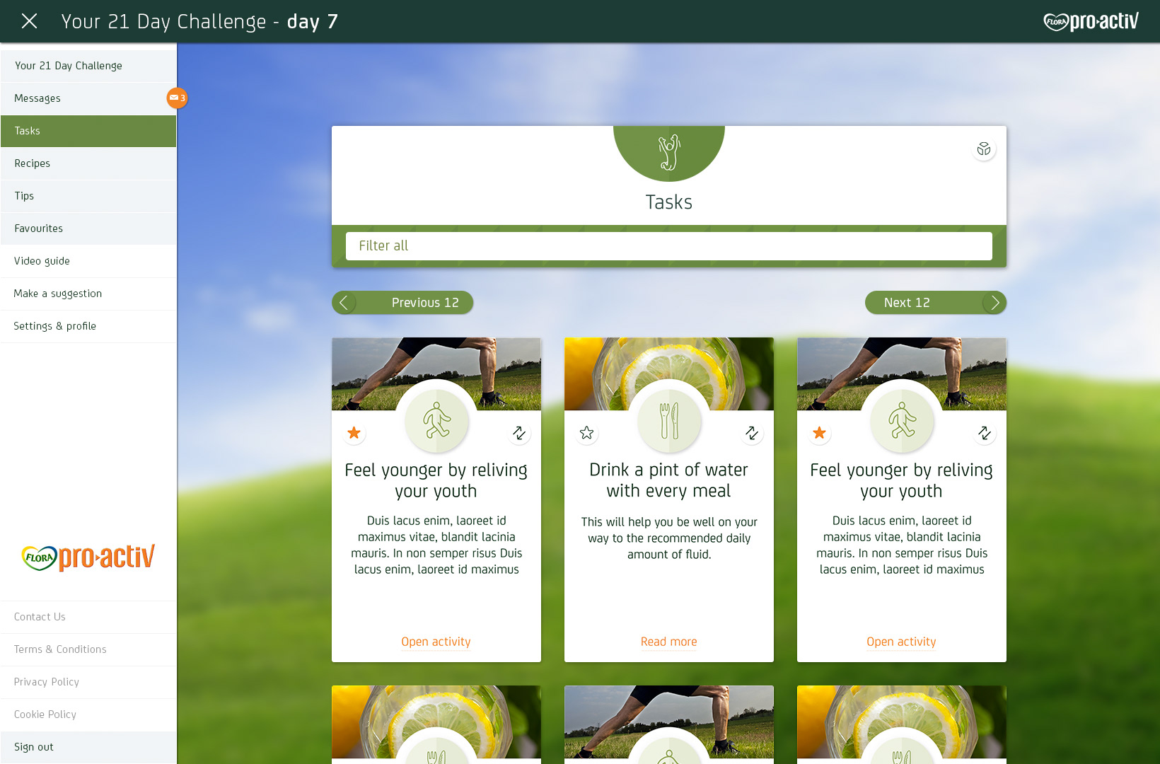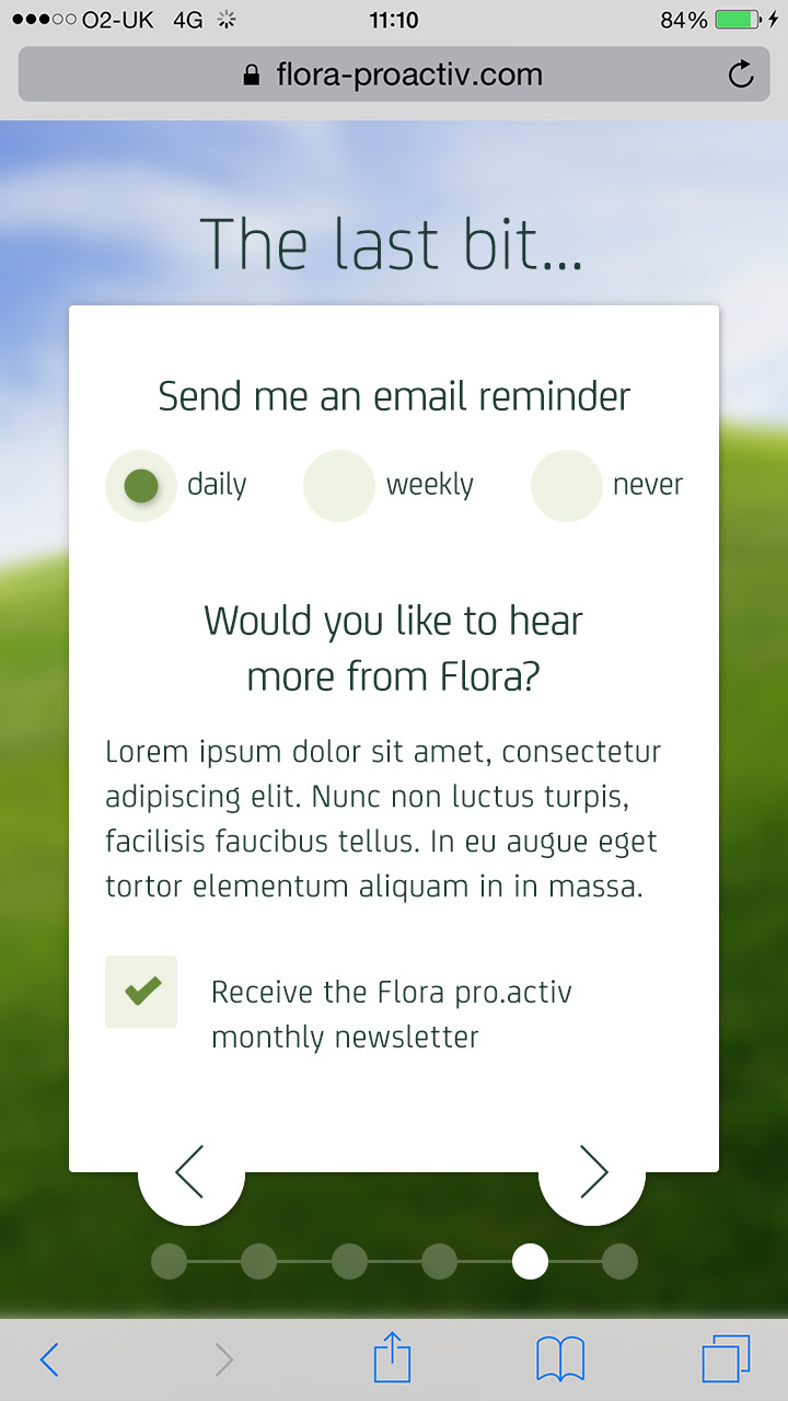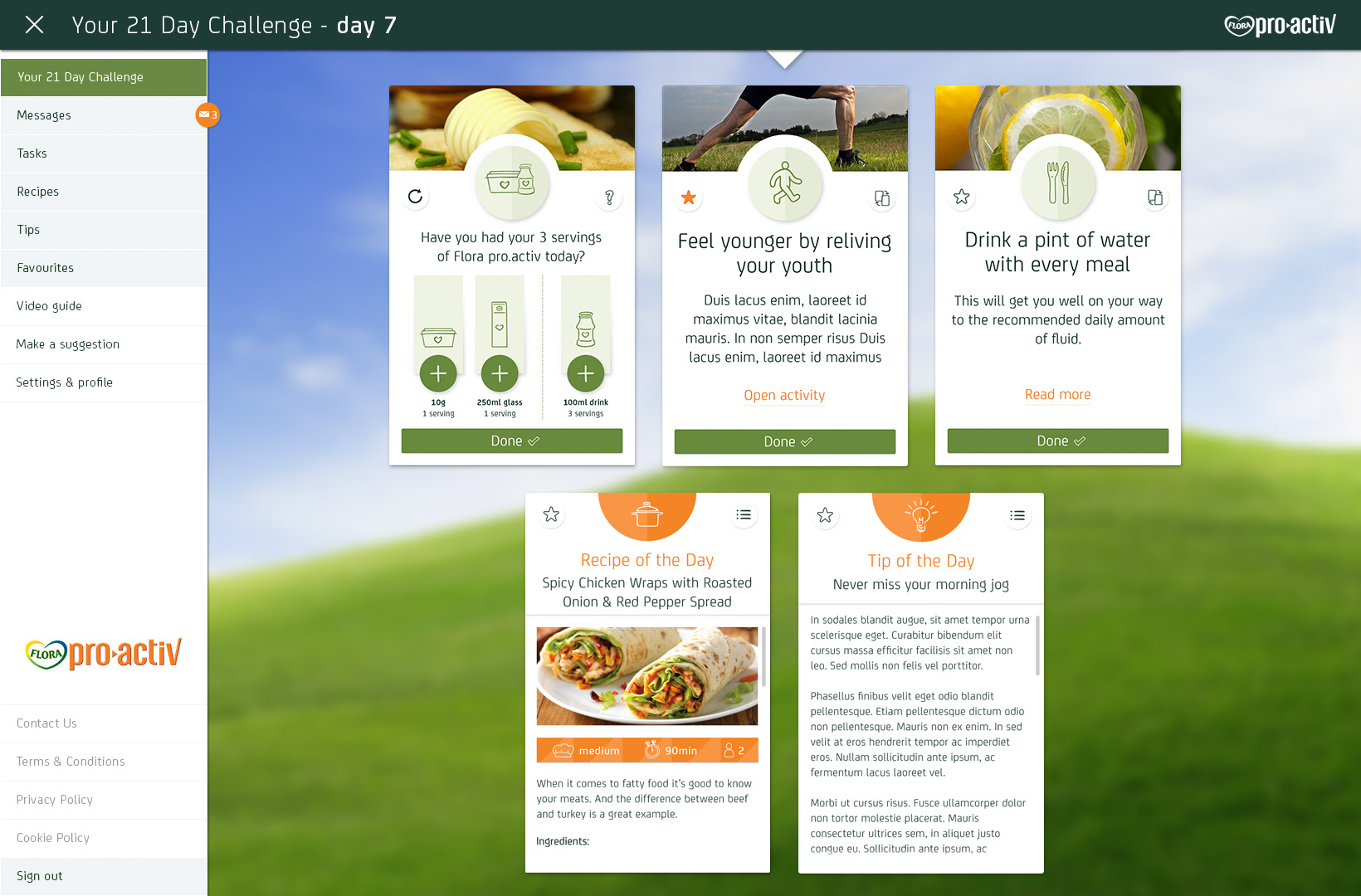 Flora Pro-Activ asked adam&eveDDB to design a 21 Day Challenge to encourage people to make small changes to their daily routine that can make a big difference to their health by lowering their cholesterol. The hope was that people would feel good about the changes and perhaps have some fun along the way.
