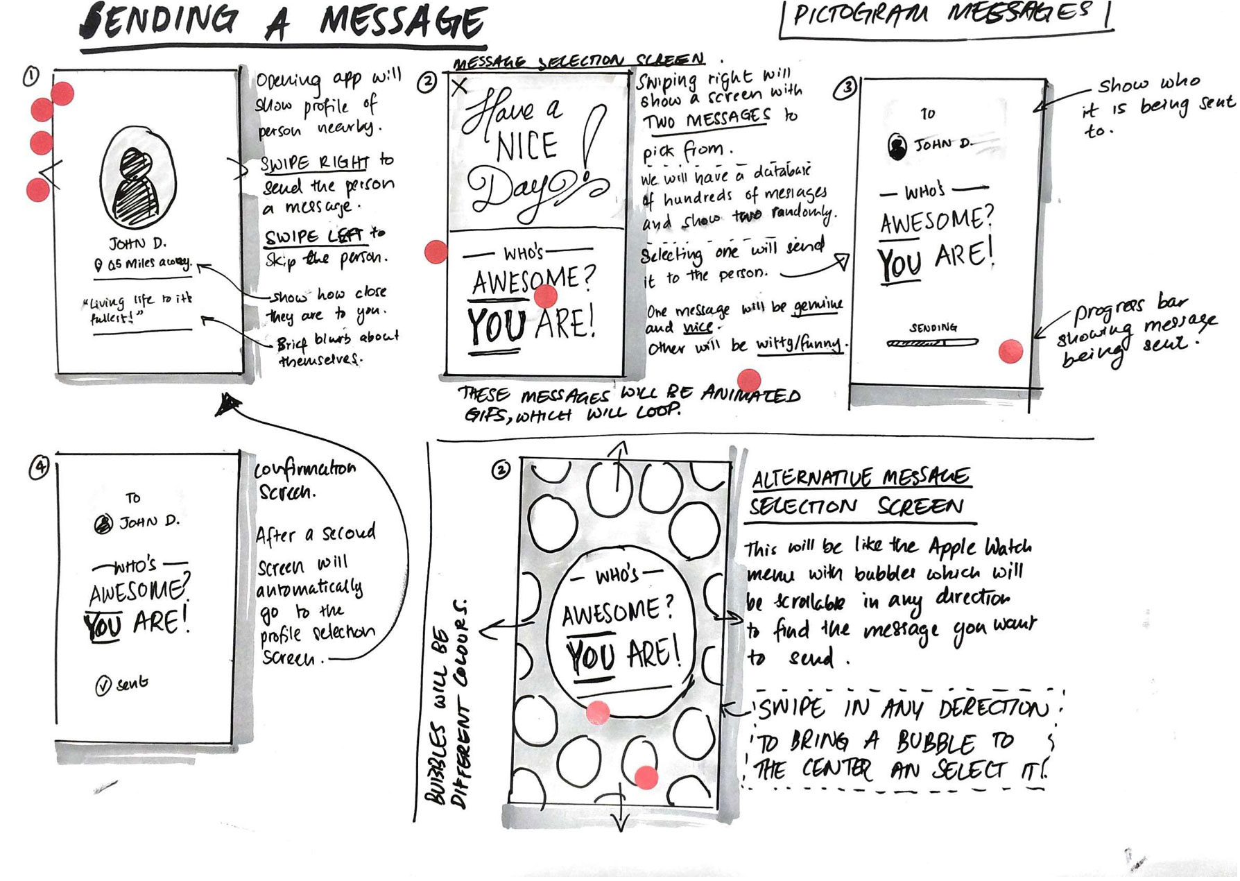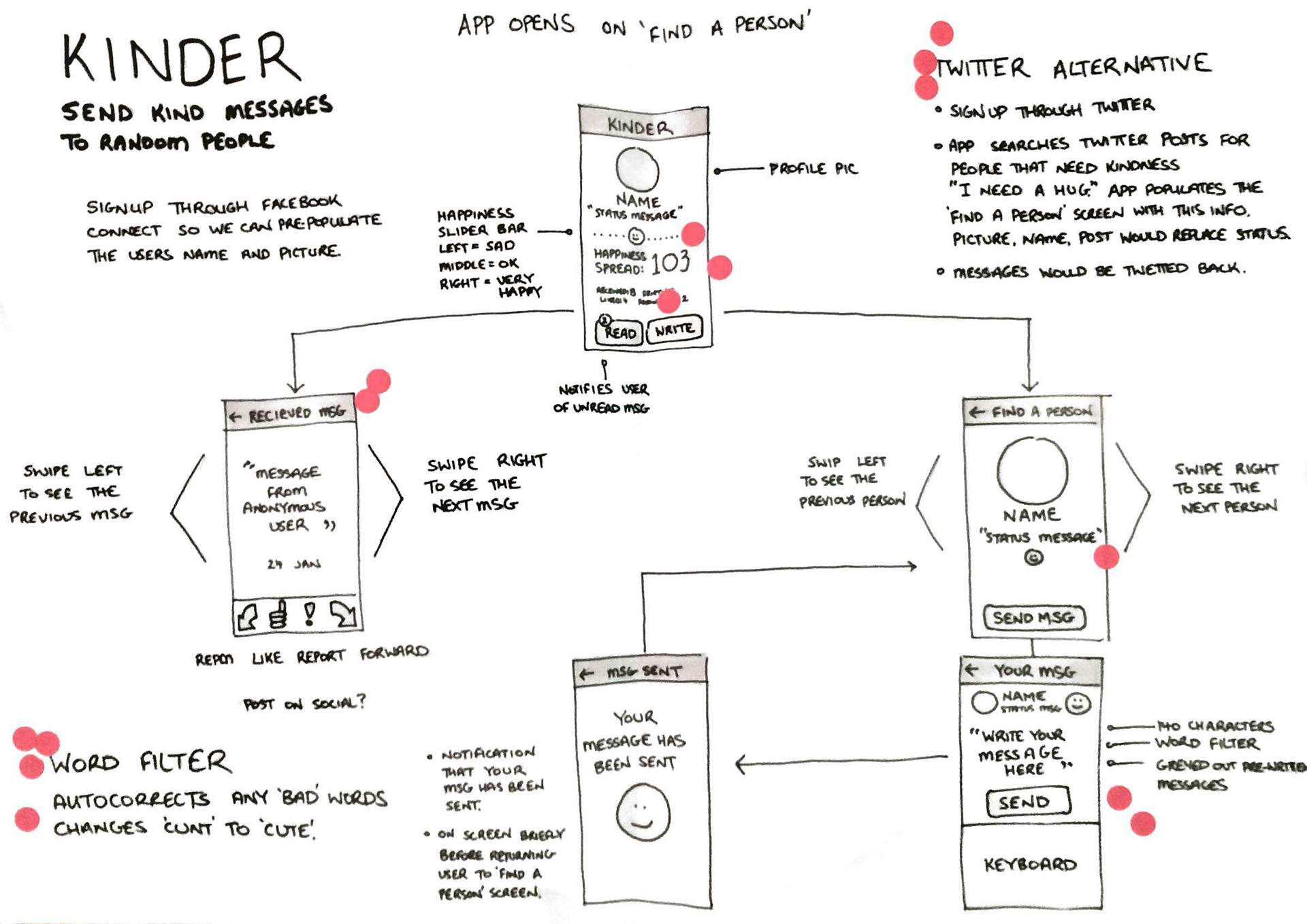 The project was self-initiated by a cross-discipline team to trial a rapid prototyping approach to app production. The goal was to take the simple idea that people like receiving happy messages and develop that into a small app, test with target audience, iterate and present a prototype to client within a week.