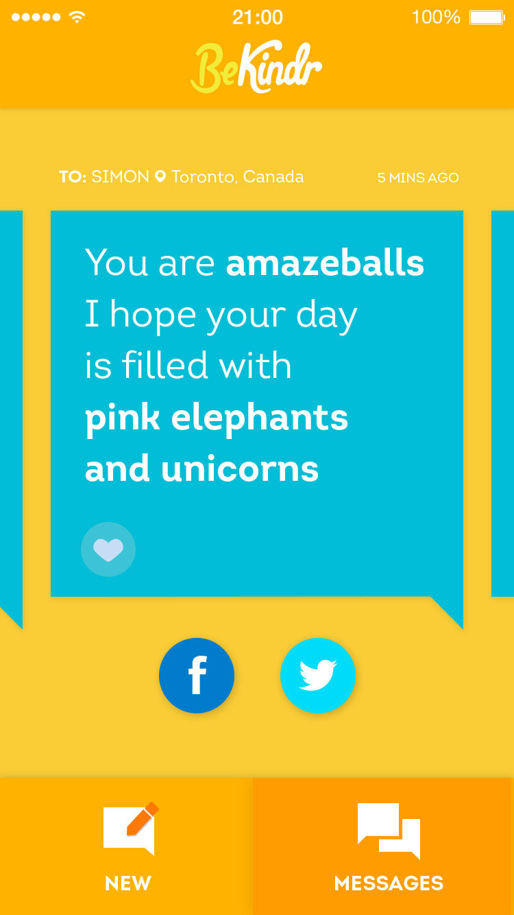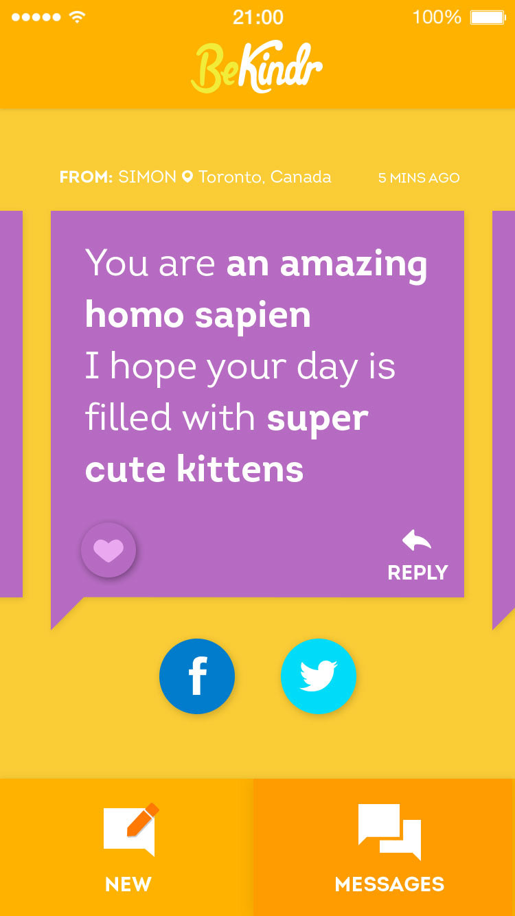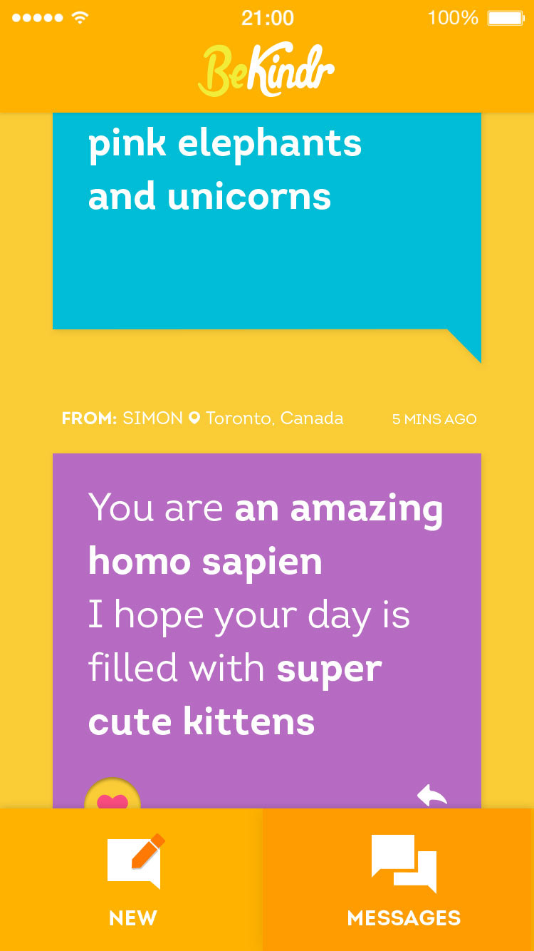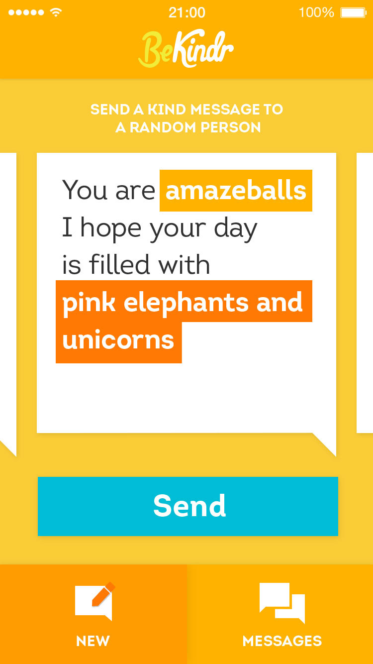 BeKindr is a little feel good app that enables you to send and receive positive messages to and from absolute strangers – people you will probably never meet. The aim is not to gain followers or to raise your personal profile but to give out little acts of kindness as well as receive them.