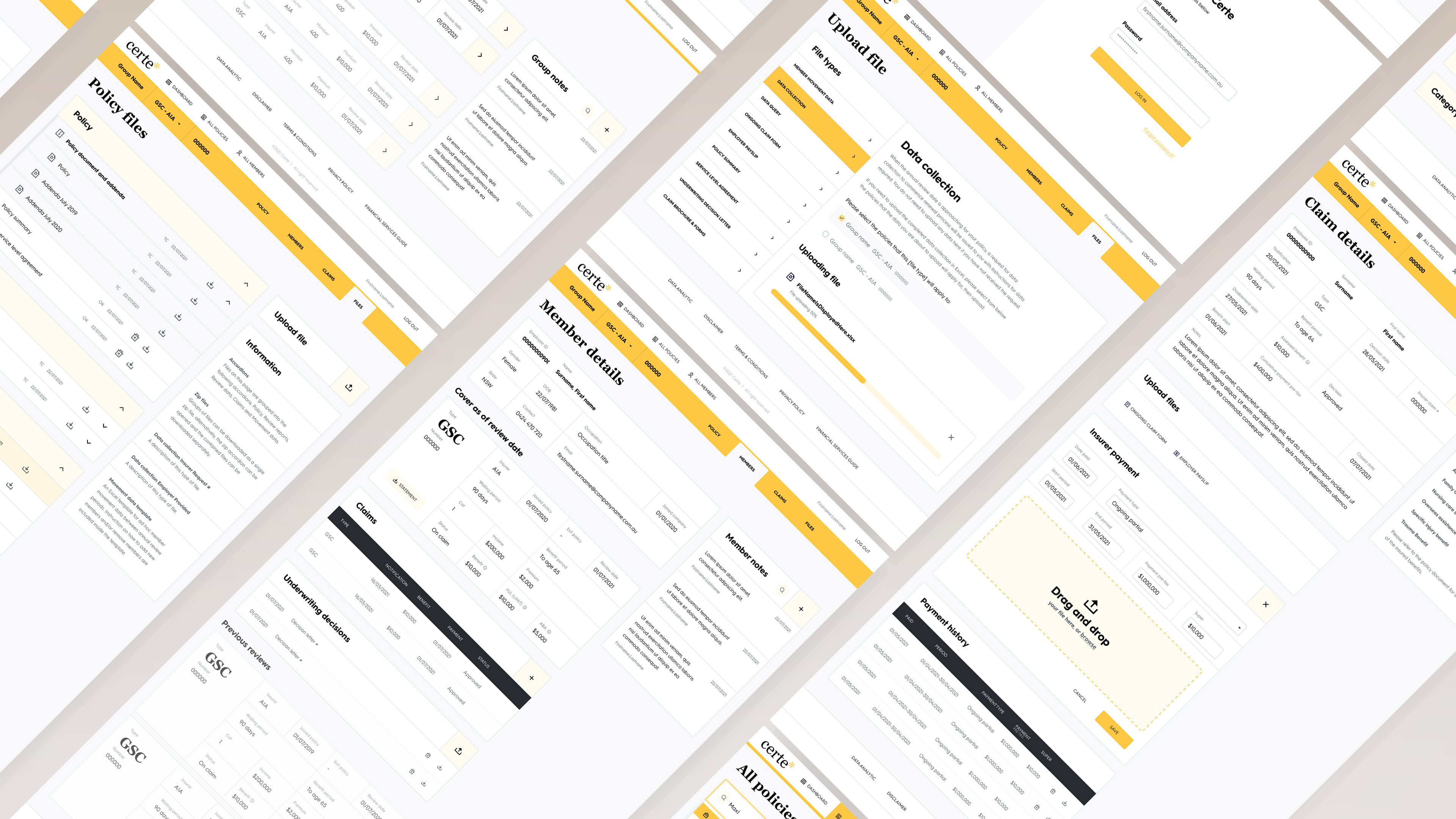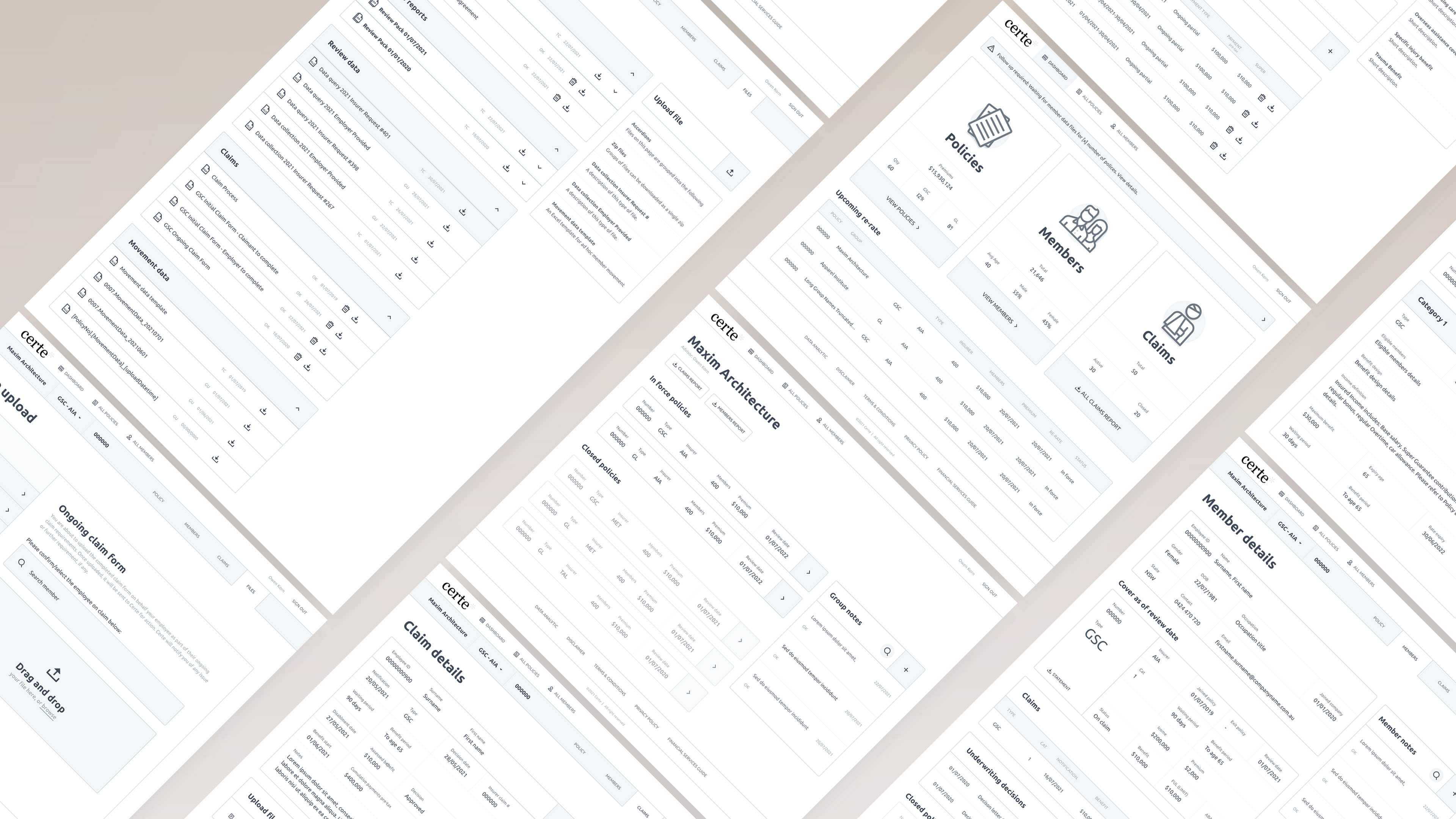 An insurance portal providing multi-layered user access to brokers, employers and employees. The portal featured access to policy information, member details, increased data security, a document repository, data analysis and visualisations. The site could be white-label for AGI's other brokers and insurance partners.
