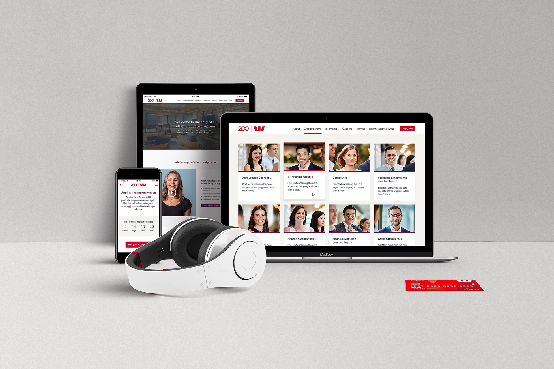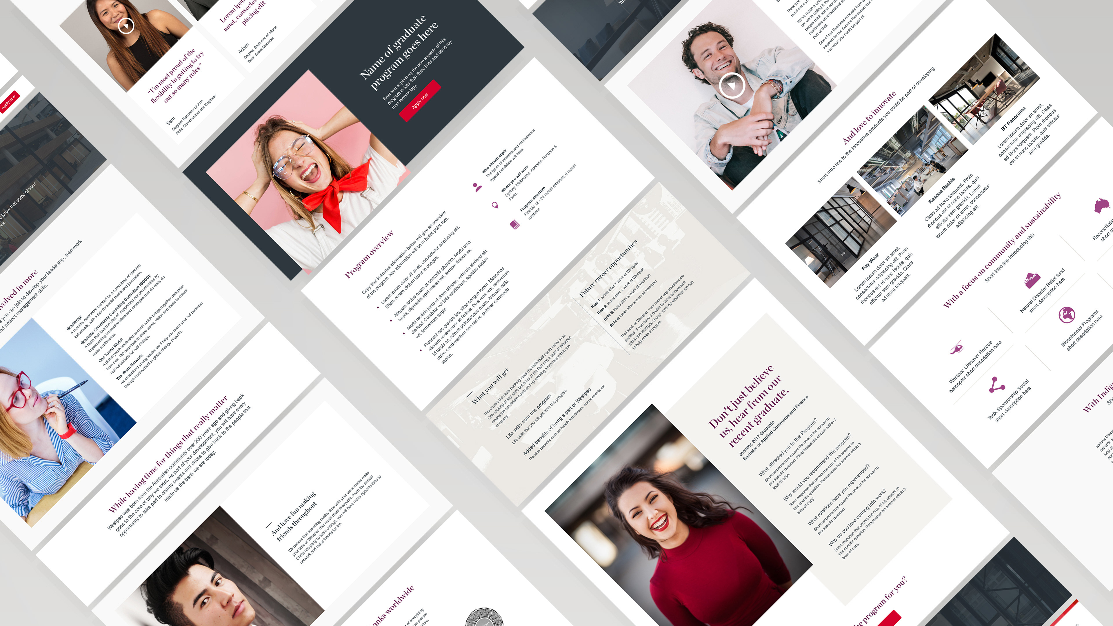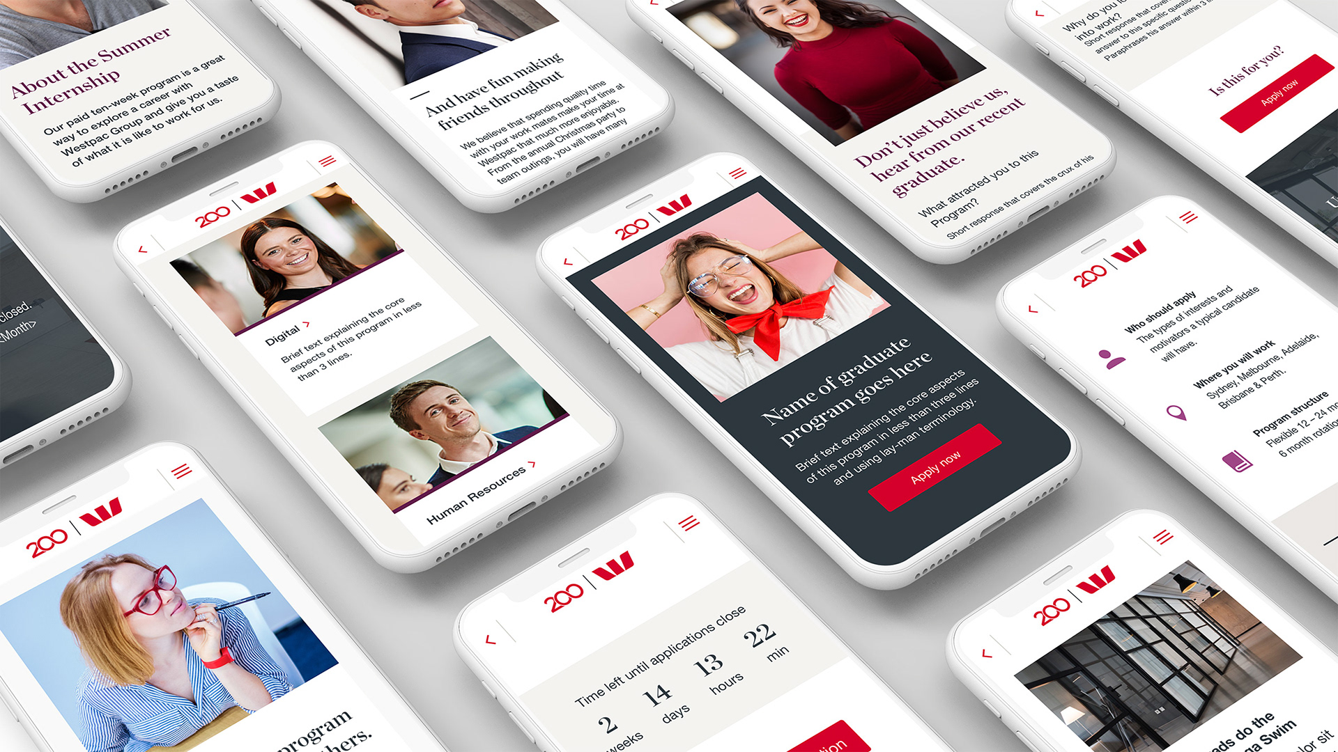 Westpac needed a structural and visual overhaul of its graduate program to attract the best talent. As graduate applications were closing soon, the redesign needed to be quick to implement and live in three weeks. We hit the deadline and graduate applications doubled.