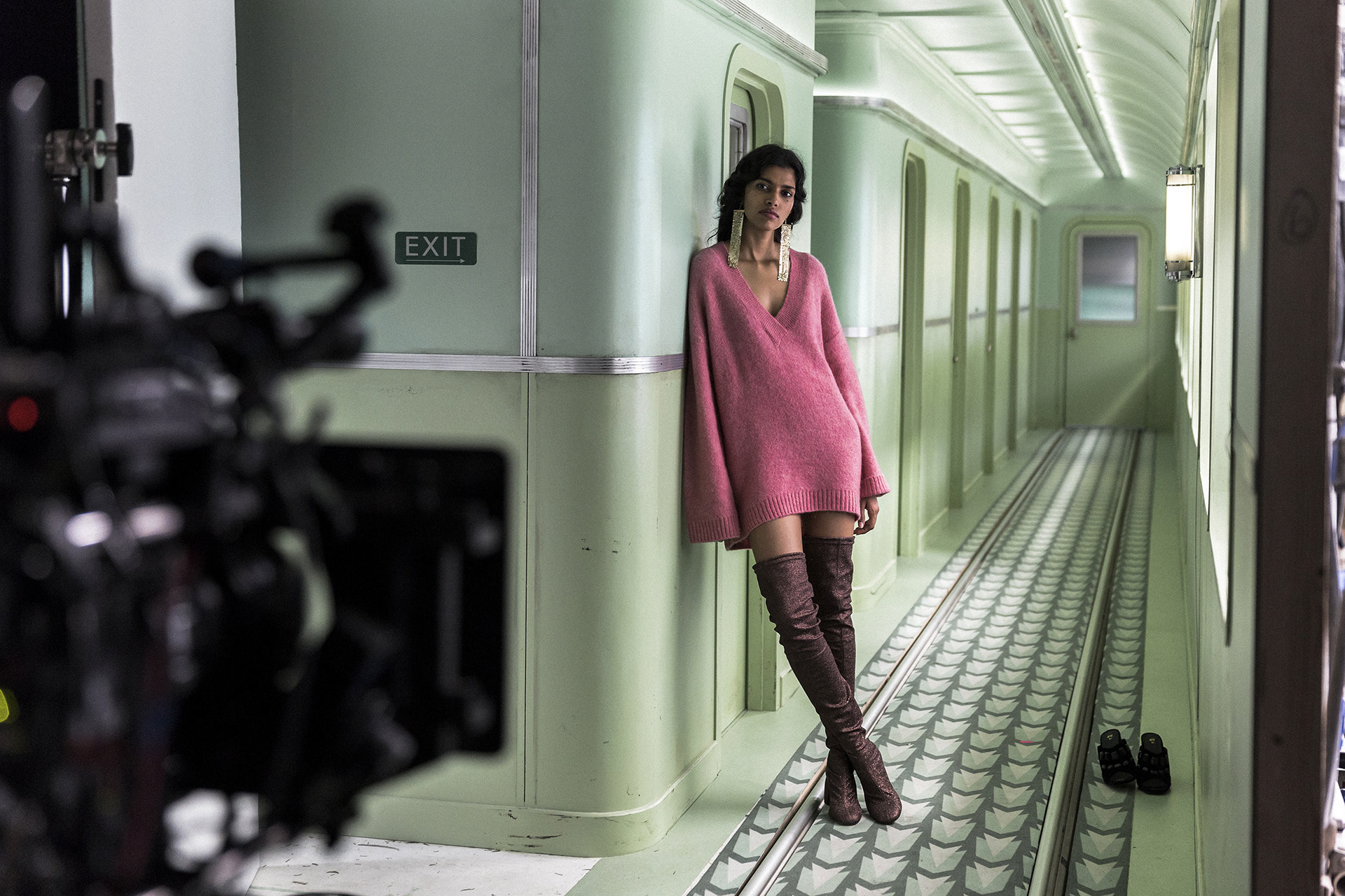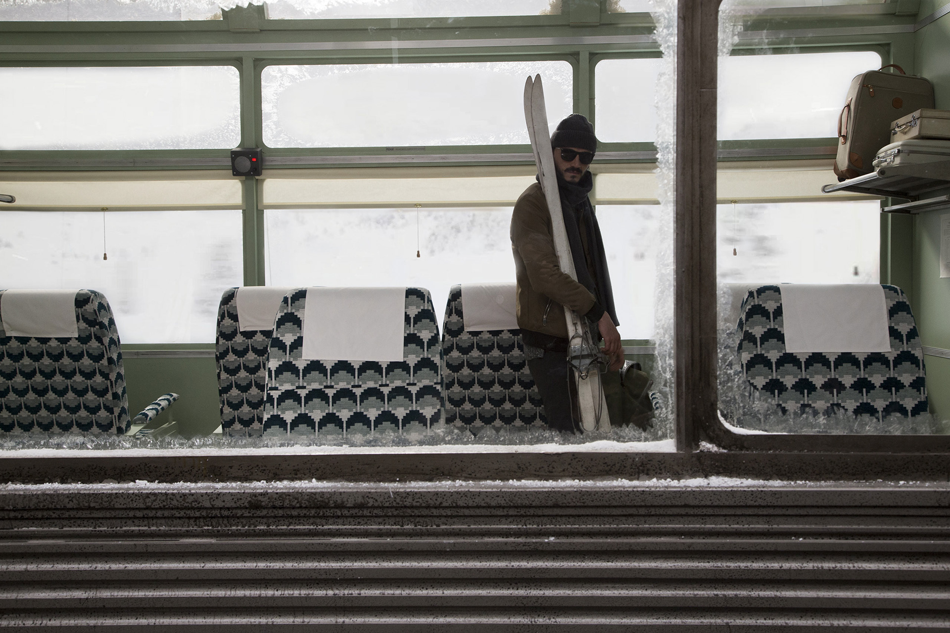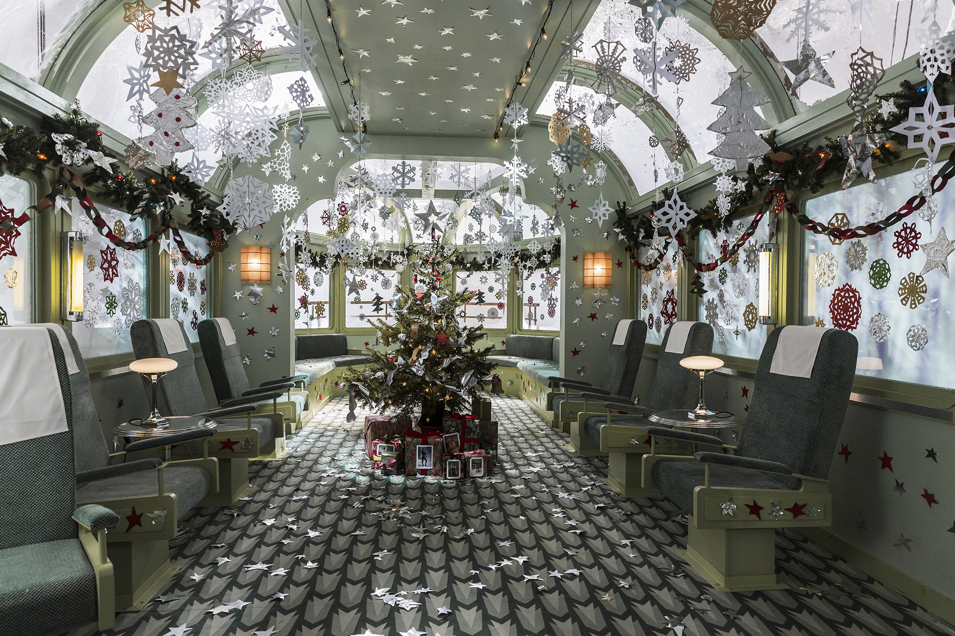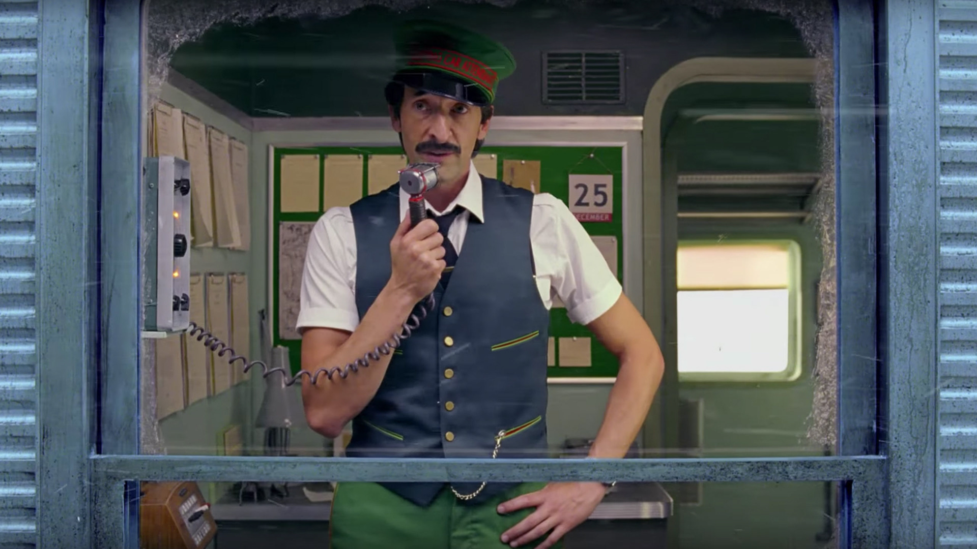 The H&M Come Together commercial, directed by Wes Anderson and starring Adrien Brody, is set on the H&M Winter Express, an art deco train travelling on Christmas Eve. Brody’s character, Conductor Ralph, announces to passengers that travel has been delayed by eleven and a half hours, due to heavy snow. With the help of assistant porter Fritz and Station Master Fred, Ralph manages to throw a Christmas party in the cafeteria at the back of the train, attended by passengers dressed in H&M’s holiday clothing collection.