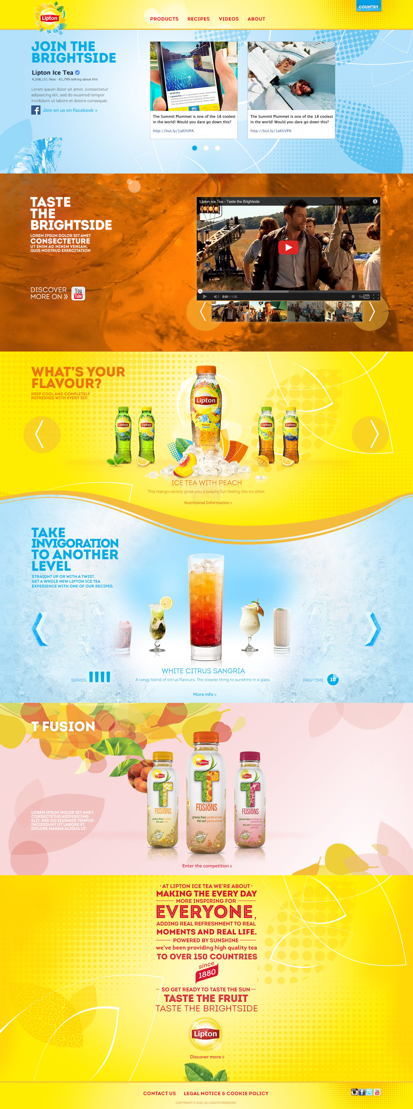 Nestle approached adam&eveDDB to update the look and feel of their existing UK Lipton Ice Tea site to reflect an update to the products packaging. However, after reviewing the site we felt it was a great opportunity to rework the content and structure as well the design. The Nestle team were impressed with the new approach and decided to roll the proposed changes out globally as well as the regional Lipton Ice Tea sites.